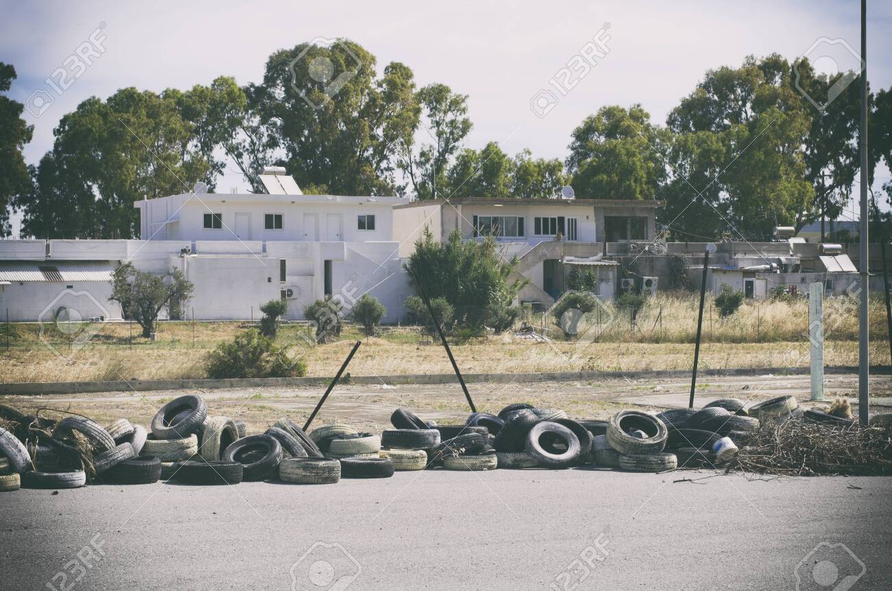 Lot Of Abandoned Used Tires In The Resort Area In The Backyard