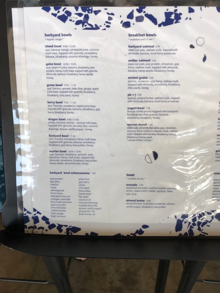 Backyard Bowls Santa Barbara 331 Motor Way Menu Prices