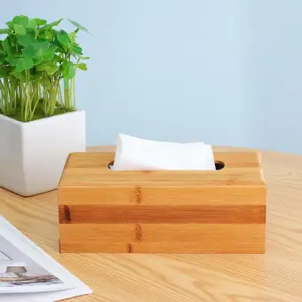 Bamboo Wooden Tissue Box Wood Holder Towel Napkin Storage Car Home
