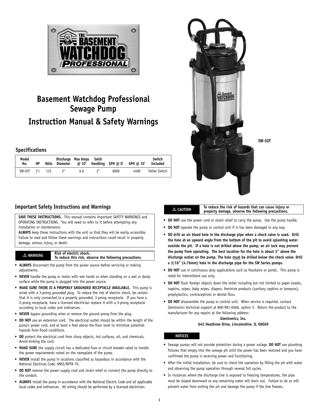 Basement Watchdog Special User Manual Page 2 12
