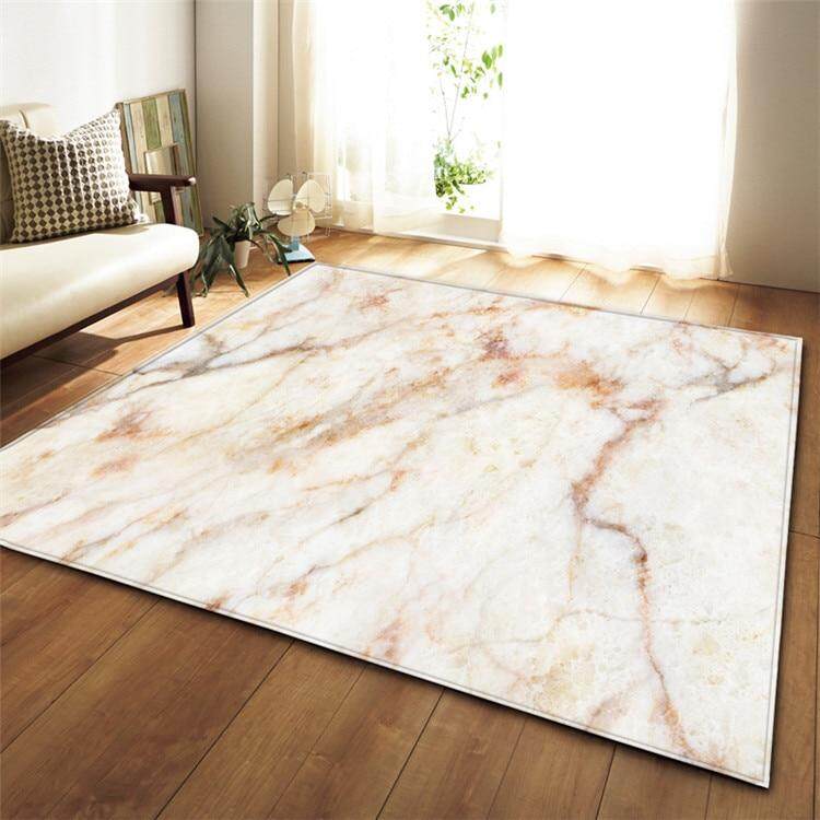 Black White Marble Printed Large Carpet For Living Room Anti Slip