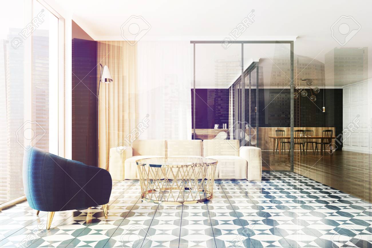 Black White Living Room Design Ideas With Black Tile Floor