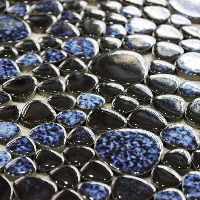 Black Mixed Blue Color Ceramic Pebble Mosaic Tiles For Bathroom