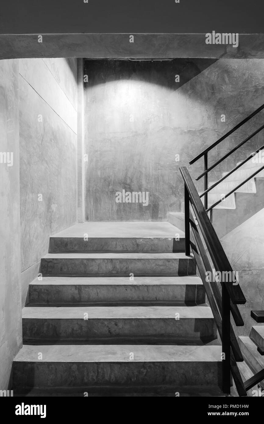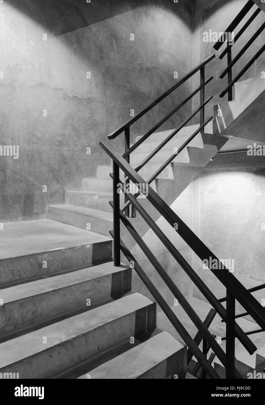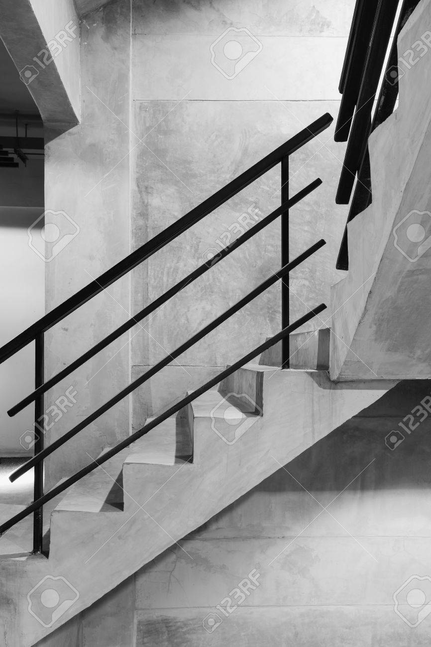 Empty Concrete Staircase With Black Steel Handrail Stock Photo