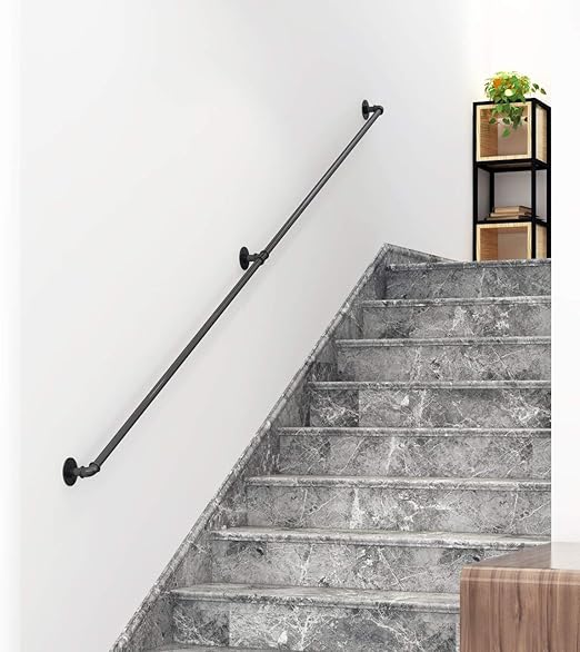 Diyhd 5ft 11ft Stair Black Pipe Handrail With 3 Wall Mount Support