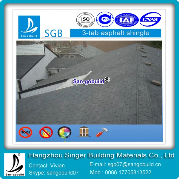 China 3 Tab Blue Asphalt Shingles Plain Roof Tiles China