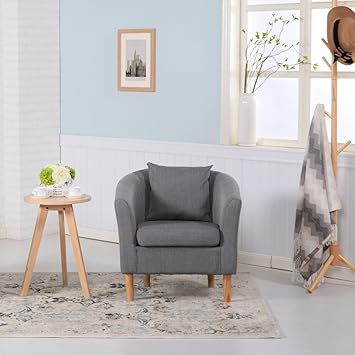 Eggree Polstersessel Loungesessel Grau Cocktailsessel Wohnzimmersessel Einzelsofa Fur Esszimmer Wohnzimmer Eleganter Retro Stuhl Aus Stoff Mit Massivholz Struktur Und Ruckenlehne Amazon De Kuche Haushalt
