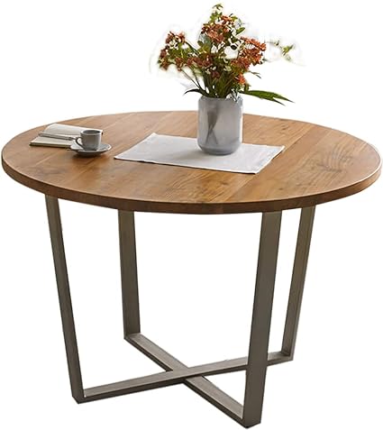 Esstisch Tamana 120x120 Akazie Natur Rund Metall Silber Mobel