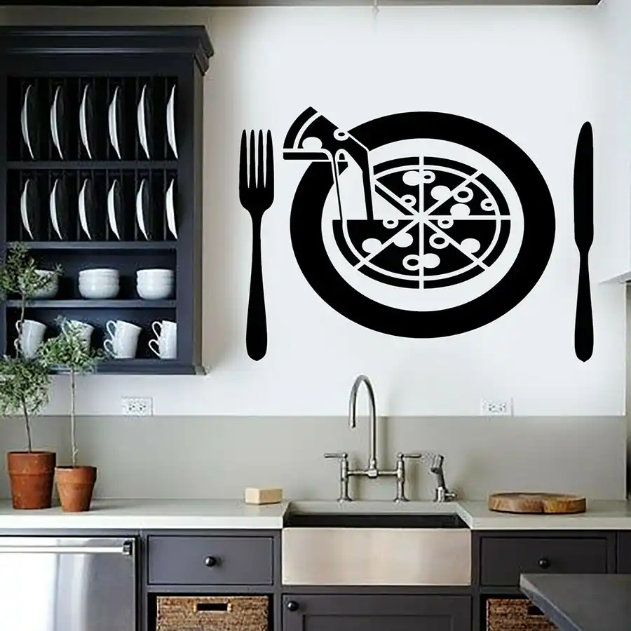 Vinyl Wand Aufkleber Pizza Scheibe Italienische Kuche Lebensmittel