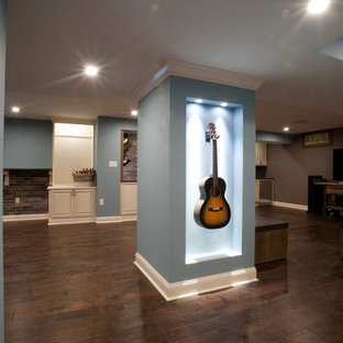 75 Beautiful Laminate Floor Basement With Blue Walls Pictures