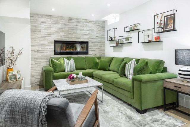 Contemporary Family Room Designed Using Basement Remodeling Ideas