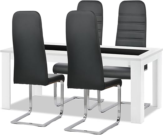 Essgruppe Holly 6 Stuhle Leder Braun 1 Tisch Schwarz Musterring