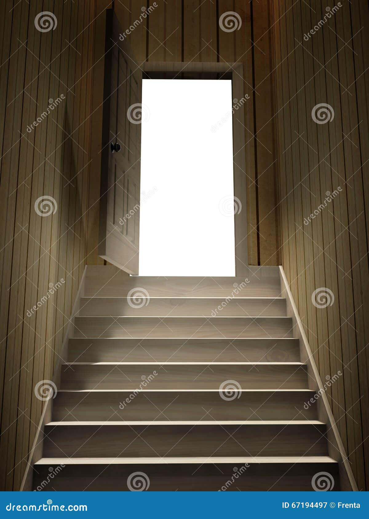 Steps Leading From A Dark Basement To Open The Door 3d Render