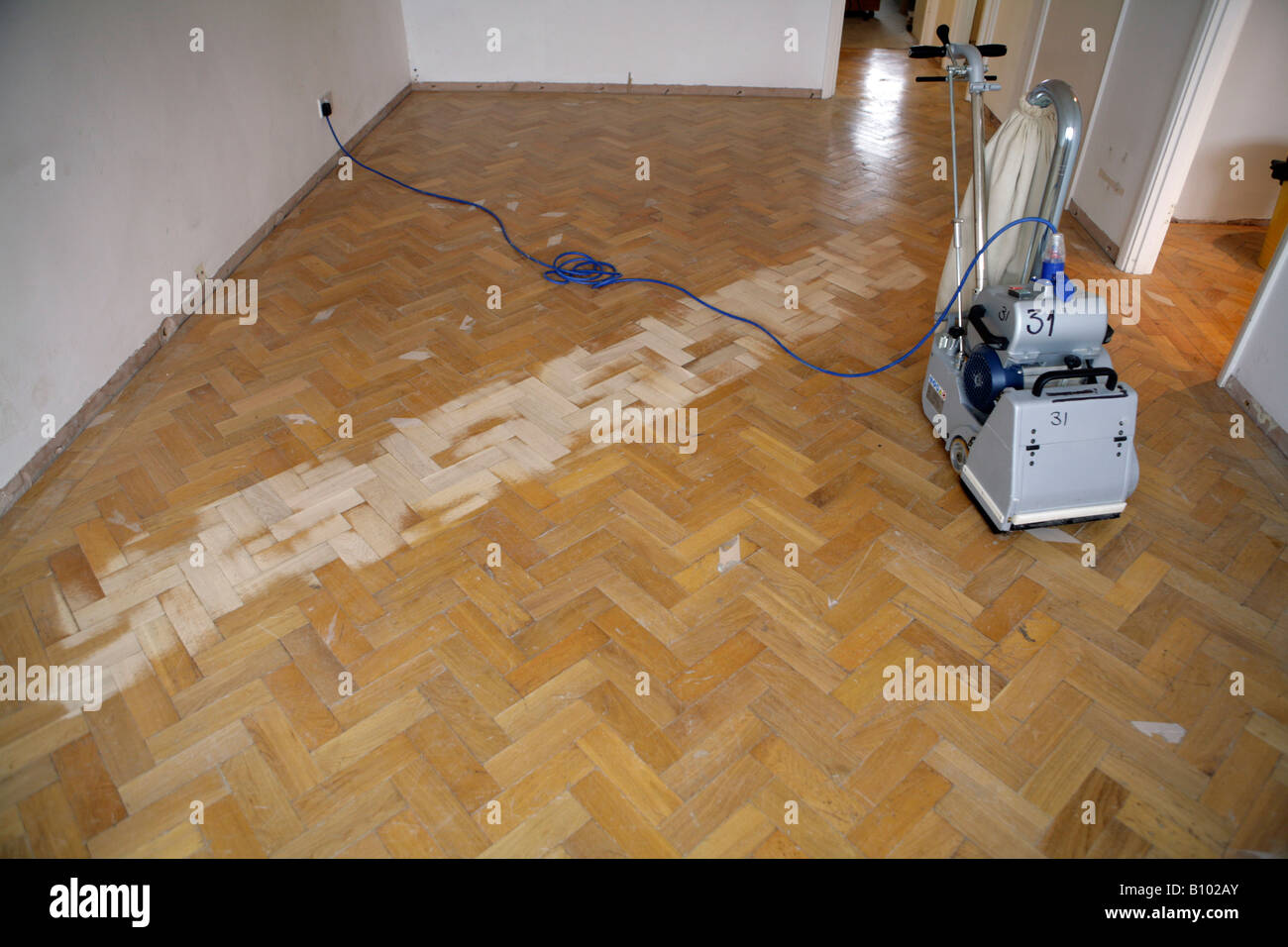 Sanding Reclaimed Oak Parquet Flooring Stock Photo Alamy