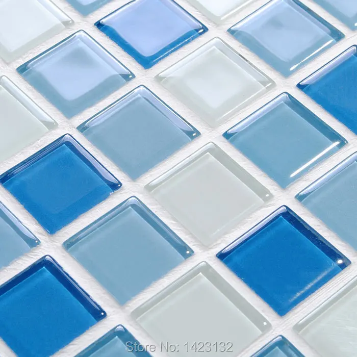 Blue Glass Mosaic Glossy Tile Modern Backsplash Square Fifyh Com