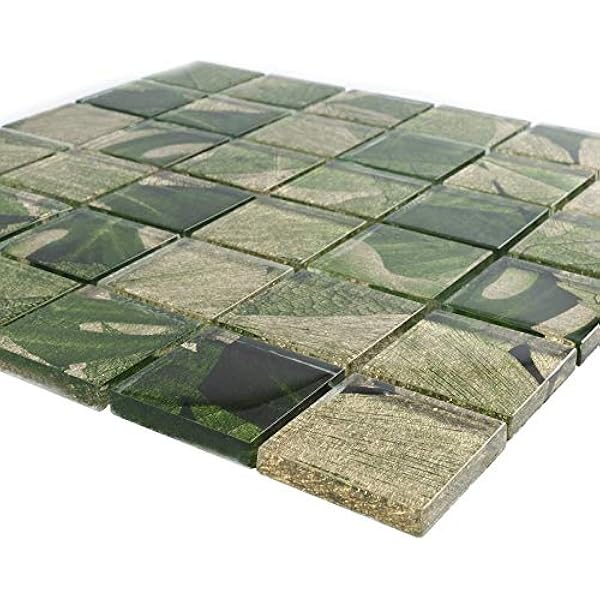 Glossy Green Gold Flower Square Glass Mosaic Tiles For Bathroom