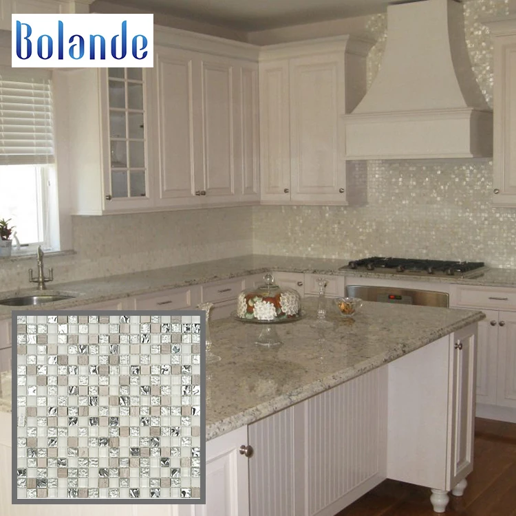 Square Glass Mixed Stone Mosaic Tiles For Kitchen Backsplash Tile