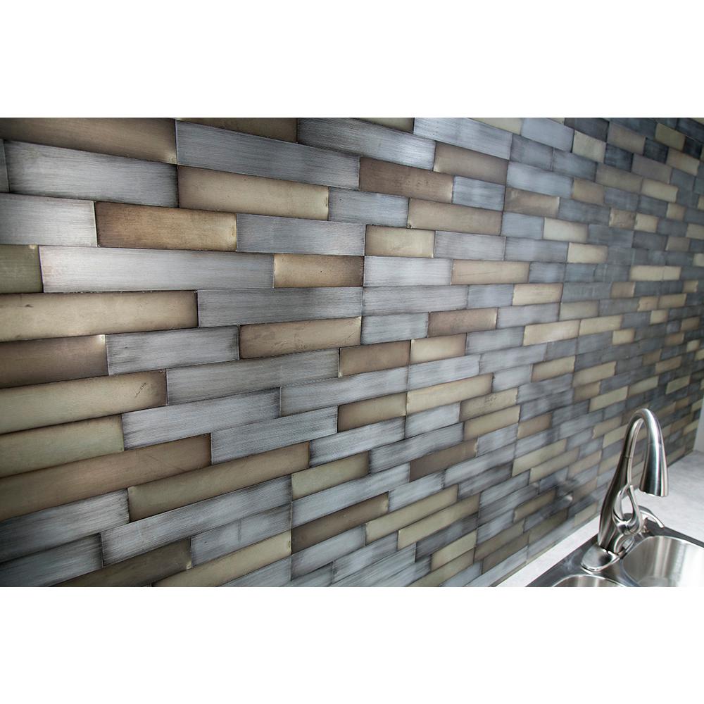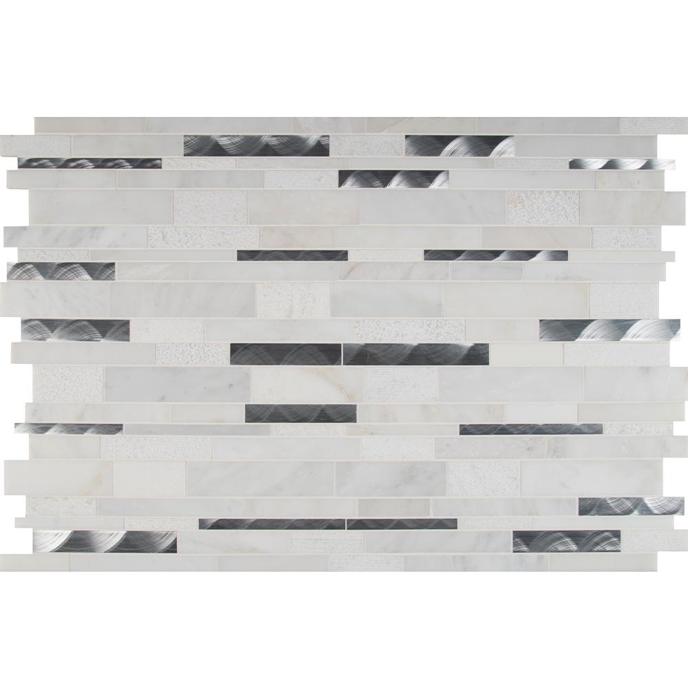 Backsplash Modamo Stainless Steel Metal And Stone Linear Mosaic