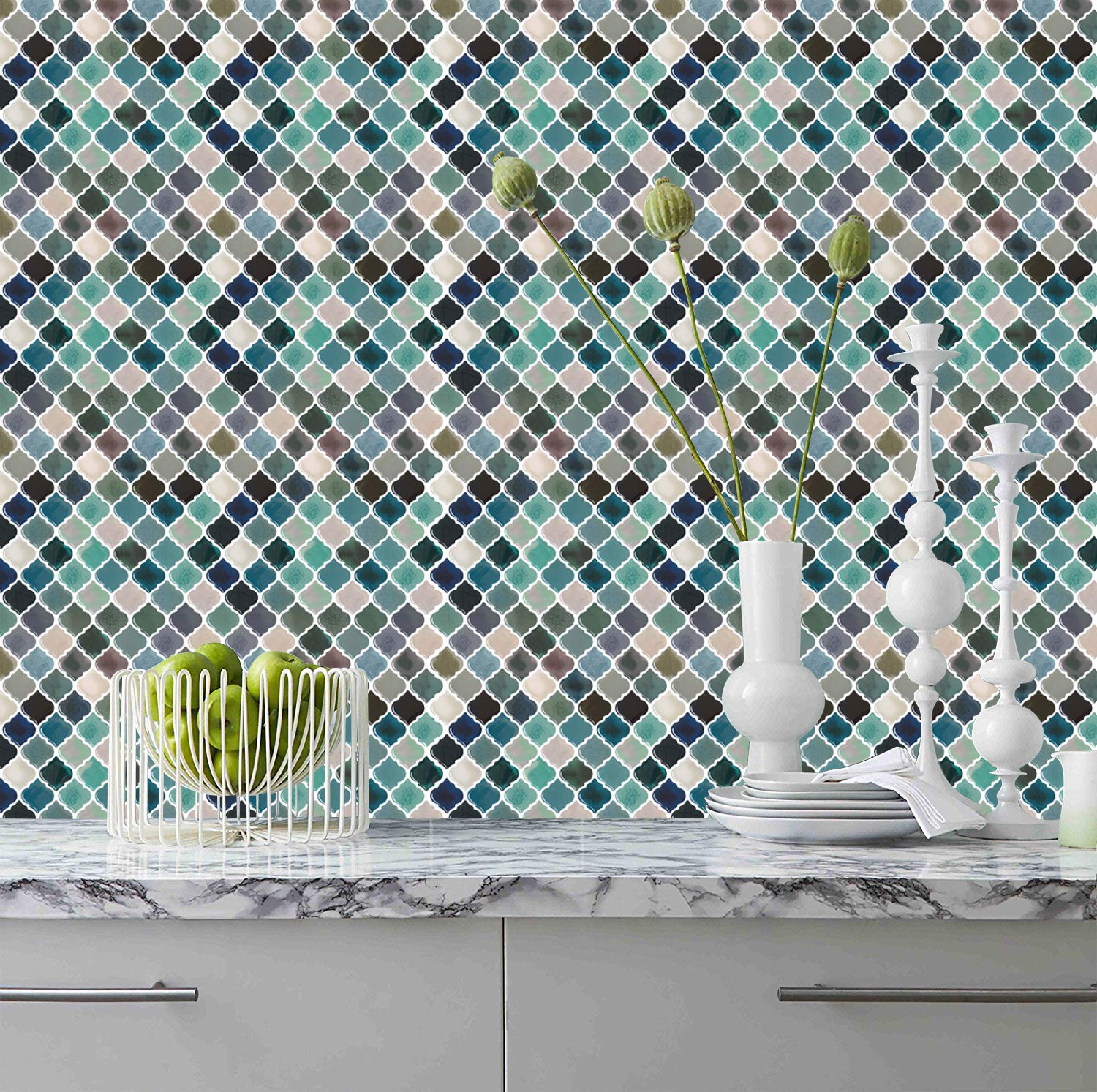 Teal Arabesque Peel And Stick Tile For Kitchen Backsplash Decorative Backsplash Peel And Stick Stick On Tiles For Backsplash Smart Tiles Peel And Stick Backsplashes 5 Sheets Amazon Sg Home