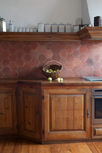 Splashback Of Honeycomb Terracotta Tiles Buy Image 12357240
