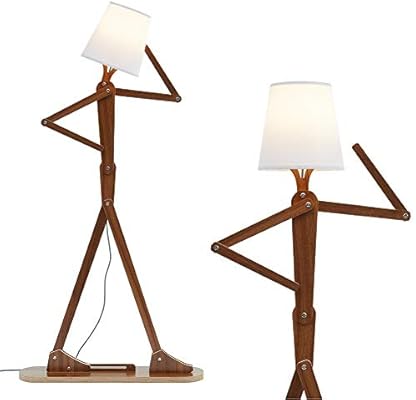 Hroome Modern Contemporary Decorative Wooden Floor Lamp Light With Fold White Fabric Shade Adjustable Height Standing Light For Living Room Bedroom Office 160cm Unique Design Diy Man Lamps Walnut Amazon Sg Home
