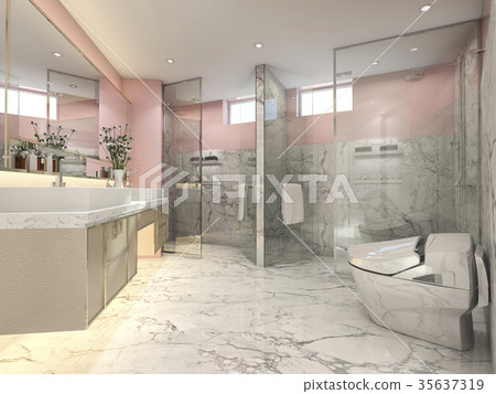 Pink Modern Vintage Bathroom With Luxury Tile Stock Illustration