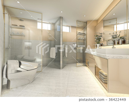 3d Rendering Cream Modern Vintage Bathroom With Luxury Tile Decor