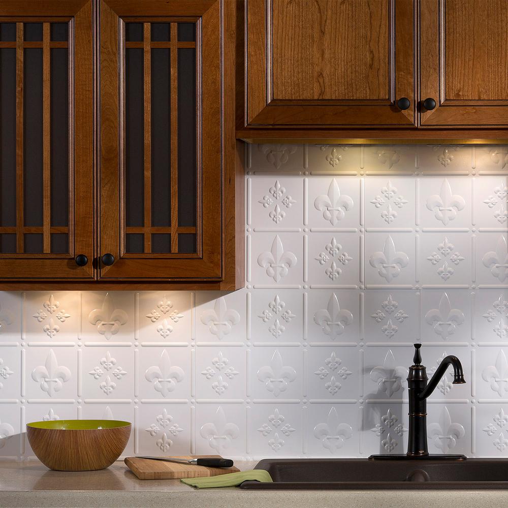 Fasade Fleur De Lis 18 In X 24 In Gloss White Vinyl Decorative