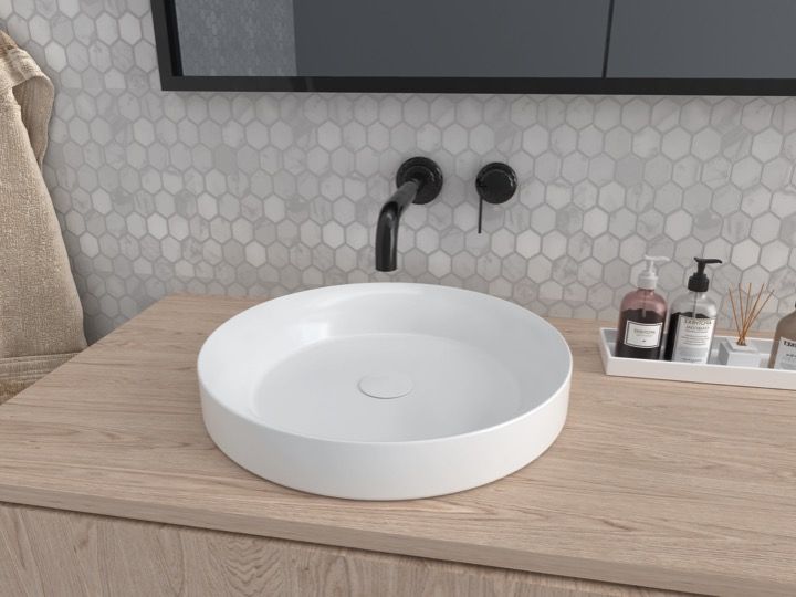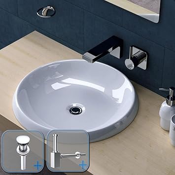 Waschbecken Rund Halb Eingelassen O 400 Mm Aus Weisser Keramik