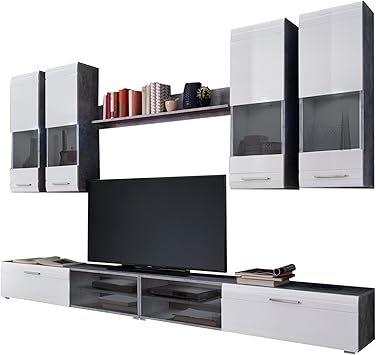 Trendteam Wohnzimmer Anbauwand Wohnwand Wohnzimmerschrank Spider 270 X 183 X 41 Cm In Korpus Stone Dekor Front Weiss Hochglanz Mit Tiefziehfronten Mit Viel Stauraum Und Ablageflache Amazon De Kuche Haushalt